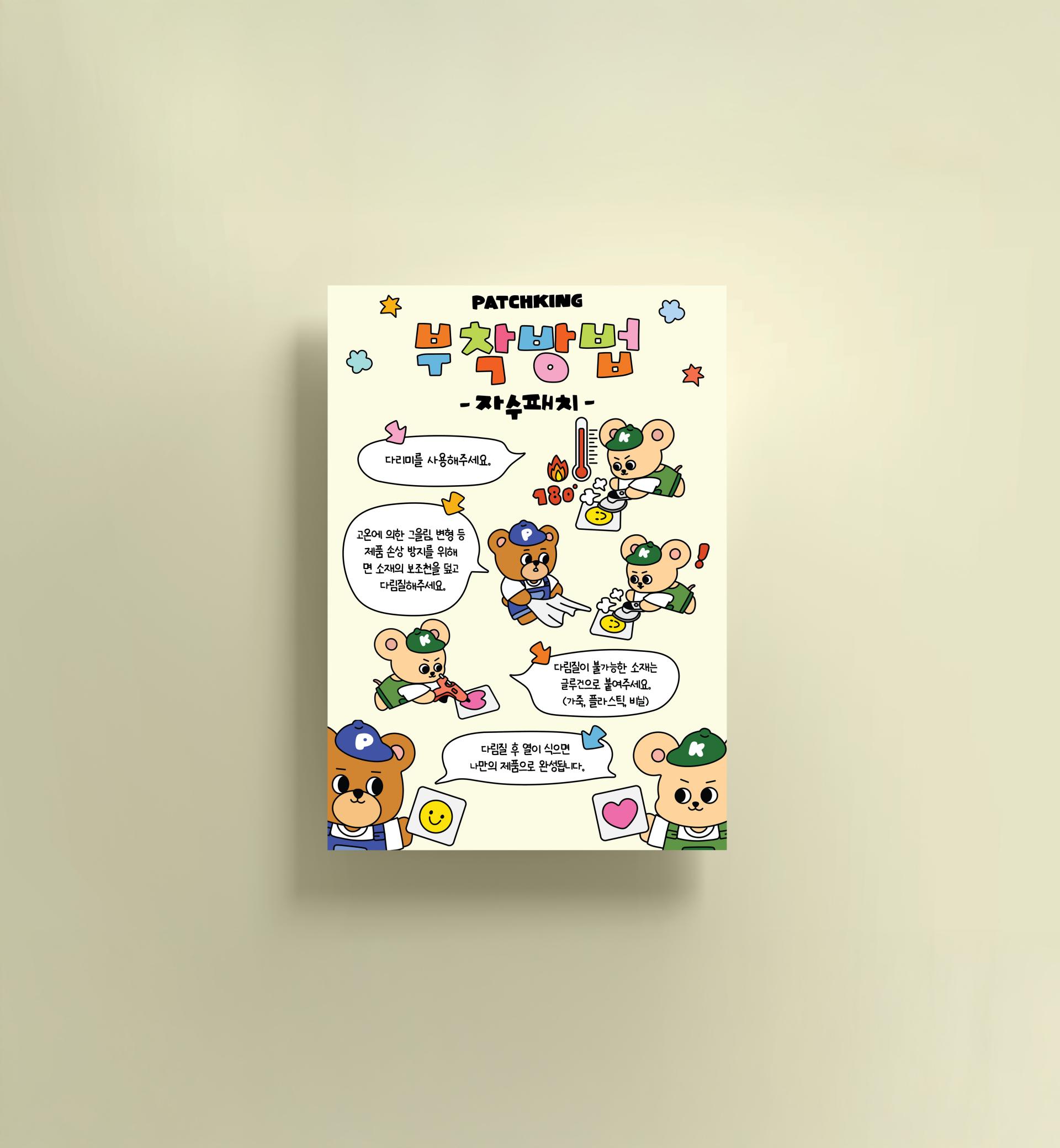 PATCHKING(패치킹)은 와펜(Patch)과 굿즈 제작을 전문으로 하는 브랜드입니다. 트렌디한 디자인과 창의적인 아이디어를 바탕으로 의류, 가방, 액세서리 등 나만의 개성을 담아 꾸밀 수 있는 맞춤형 와펜을 제공합니다. 브랜드 아이덴티티를 강화하는 캐릭터와 굿즈를 통해 소비자와의 소통을 넓히며, 창의적인 디자인을 지속적으로 연구 및 확장하고 있습니다.
