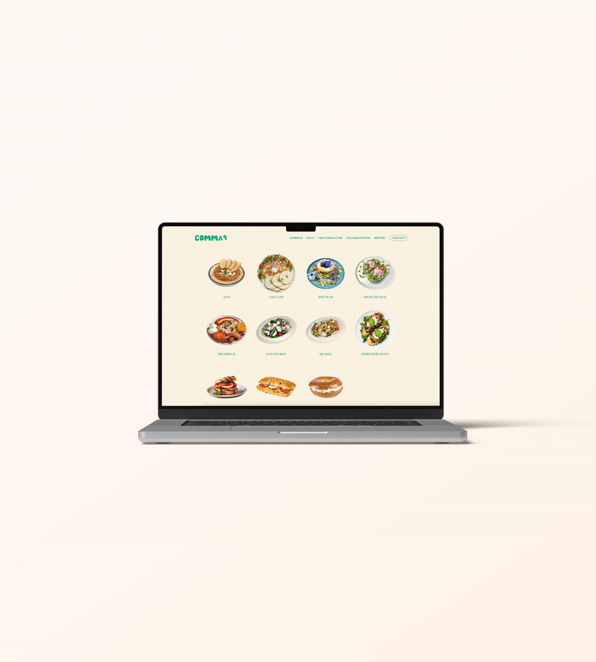 밸디와 함께한 COMMA9은 감각적인 비주얼 아이덴티티를 담은 웹 사이트와 회사소개서를 제작하였습니다. 브랜드 소개, 메뉴, F&B 컨설팅, 콜라보레이션, 리뷰 등 카테고리를 직관적으로 구성해 메뉴 경쟁력과 F&B 서비스를 명확히 전달하고, 브랜드 철학과 비전을 구조화해 한눈에 이해할 수 있도록 했습니다.